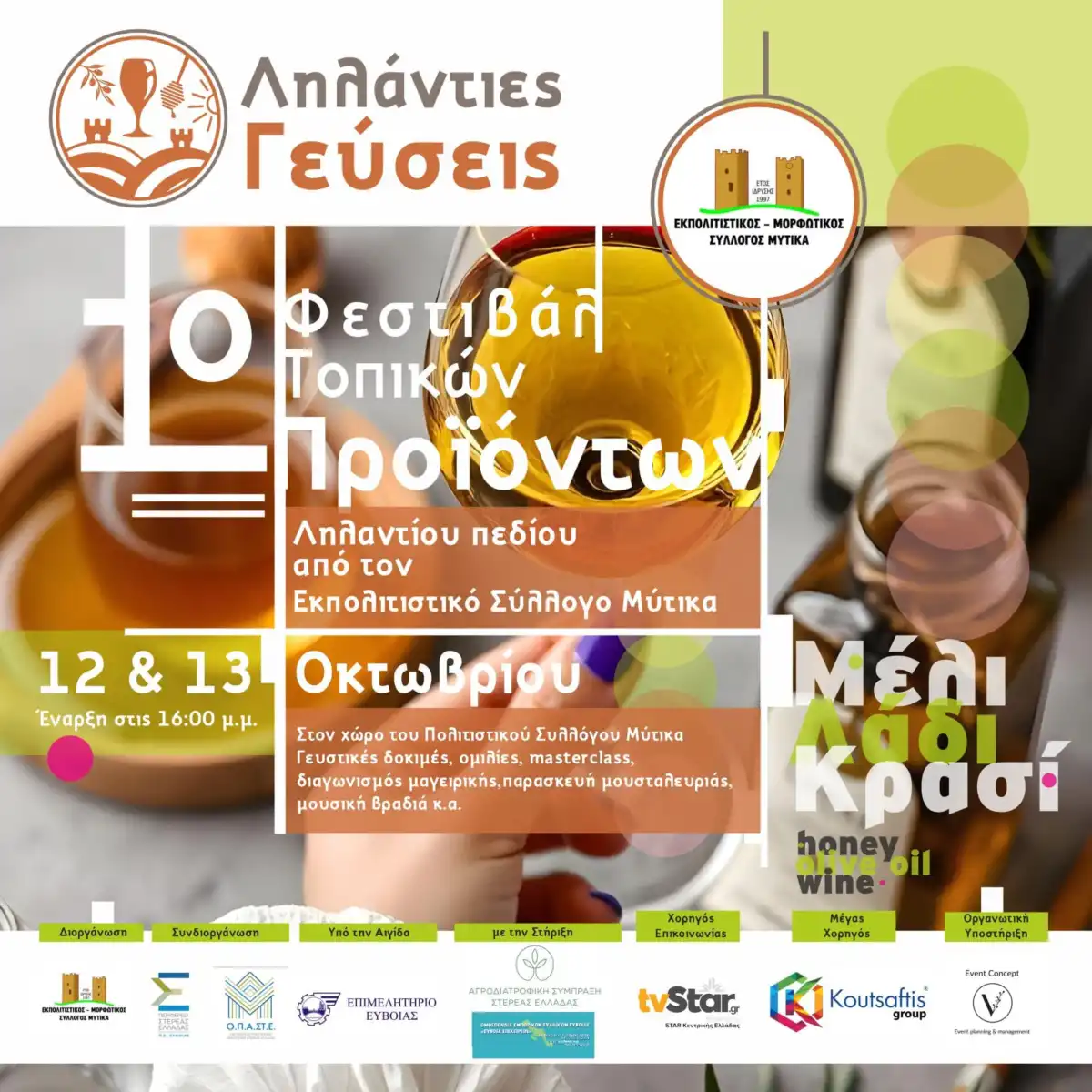 Ένα Σαββατοκύριακο γεμάτο γεύση και αρώματα υπόσχεται το 1ο Φεστιβάλ Τοπικών Προϊόντων Ληλαντίου πεδίου που διοργανώνεται από τον Εκπολιτιστικό – Μορφωτικό Σύλλογο Μύτικα. Παραγωγοί του Ληλαντίου πεδίου, κυρίως από το Μύτικα θα συμμετάσχουν στο πρώτο φεστιβάλ τοπικών προϊόντων του Ληλαντίου Πεδίου.