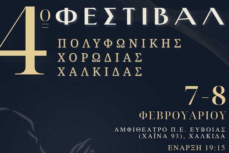 Η Πολυφωνική Χορωδία Χαλκίδας διοργανώνει το 4ο Φεστιβάλ της το Σάββατο 7 και την Κυριακή 8 Φεβρουαρίου 2026, στο αμφιθέατρο της Περιφερειακής Ενότητας Εύβοιας, φέρνοντας κοντά χορωδίες και φίλους της χορωδιακής μουσικής για ένα διήμερο αφιερωμένο στο τραγούδι και τη συνεργασία.