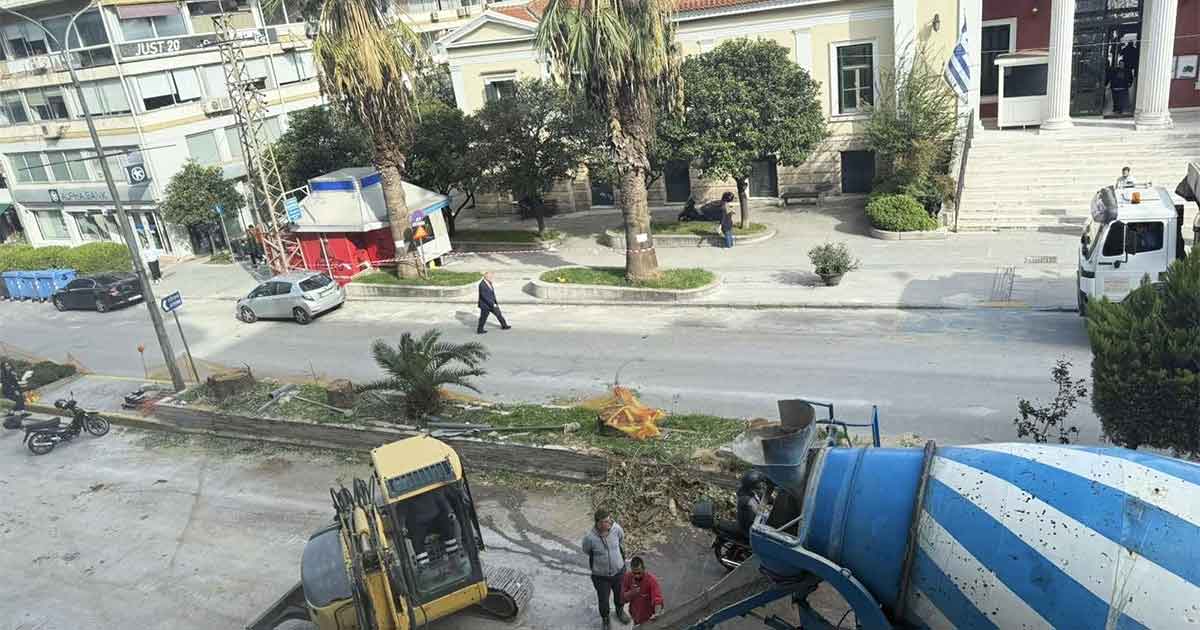 Η «ανάπλαση» μπροστά στα Δικαστήρια μεταφράζεται σε περισσότερο τσιμέντο, λιγότερη σκιά και λιγότερο οξυγόνο. Το αποτέλεσμα; Μια πόλη πιο “άδεια” και πιο “καυτή” – κυριολεκτικά και μεταφορικά.