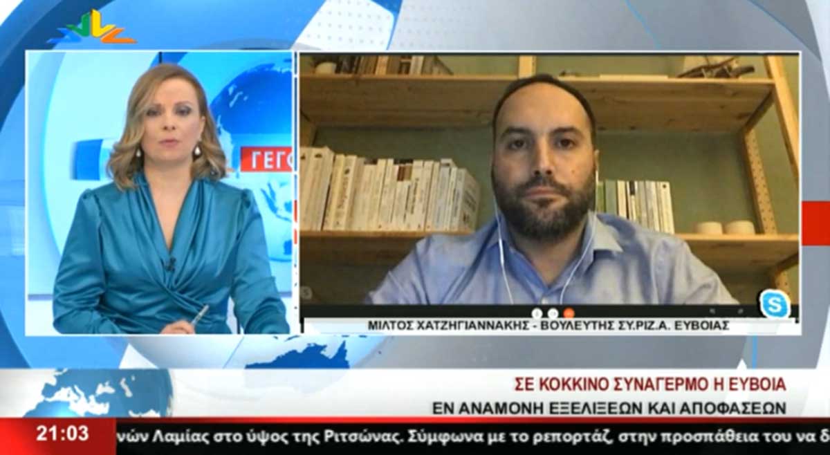 Τη δύσκολη οικονομική κατάσταση που έχουν περιέλθει οι επιχειρηματίες της εστίασης στην Εύβοια αλλά και την υπόλοιπη Ελλάδα ανέδειξε ο Μίλτος Χατζηγιαννάκης, μιλώντας το βράδυ της Πέμπτης στον τηλεοπτικό σταθμό Σταρ Κεντρικής Ελλάδας και τη δημοσιογράφο Λένα Παρασκευά.