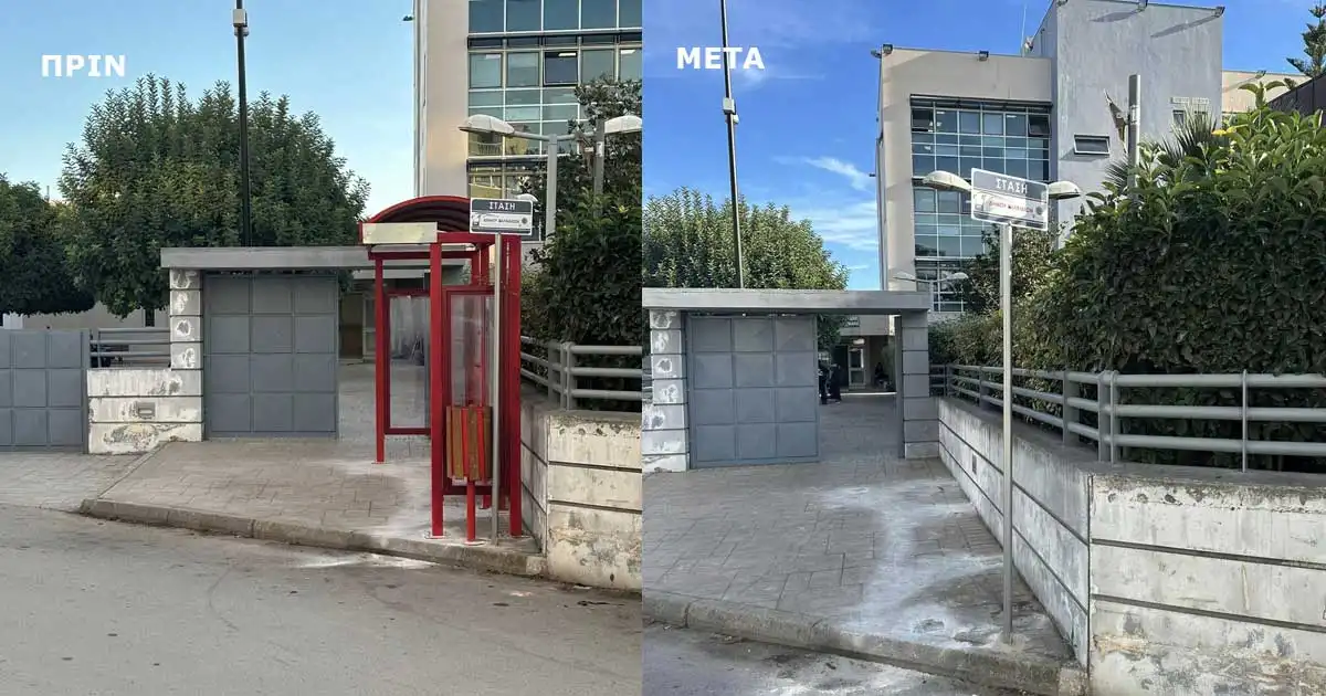 Μετά την έντονη παρέμβαση της επικεφαλής της παράταξης ΝΕΑ ΠΟΛΗ, Άννας Παππά, η αυθαίρετα τοποθετημένη στάση στην είσοδο της Περιφέρειας απομακρύνθηκε.