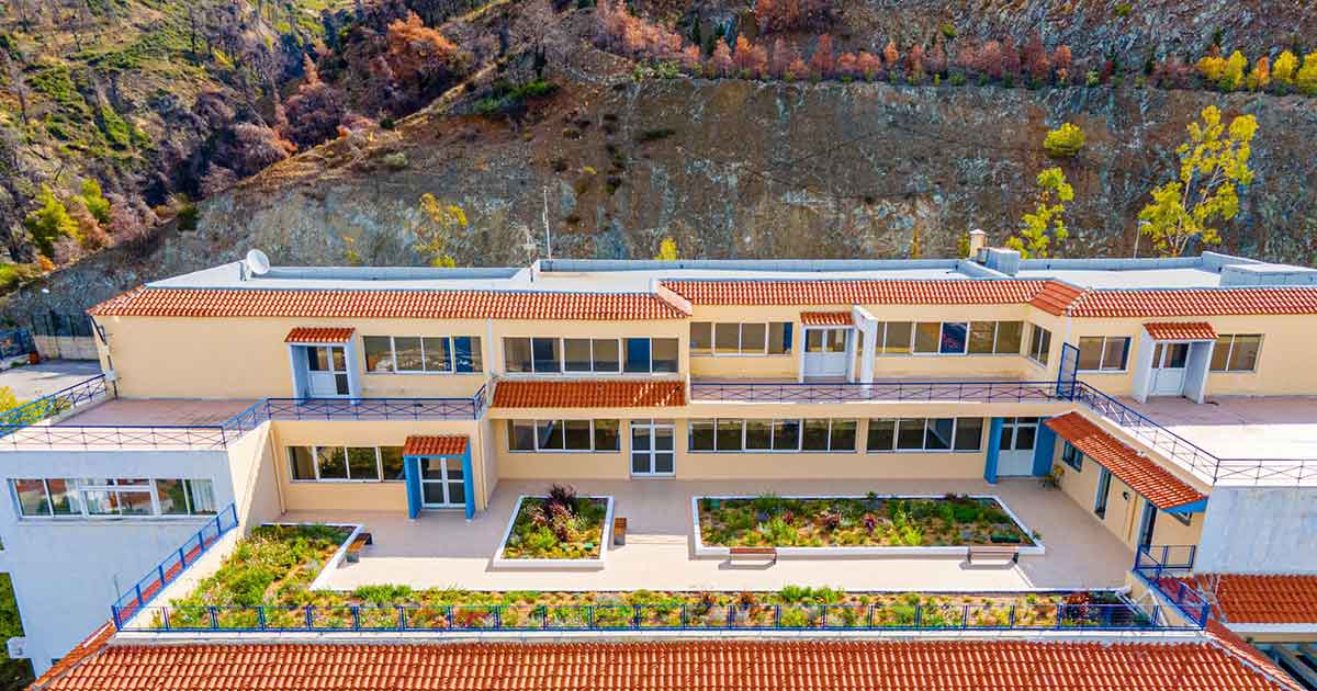 Στο Γυμνάσιο-Λύκειο Λίμνης, η κατασκευή πρότυπης «πράσινης» στέγης με χαμηλή βλάστηση στο αίθριο του πρώτου ορόφου και η αντικατάσταση δύο στεγασμένων κατασκευών με ειδικά καθίσματα στον προαύλιο χώρο, προσφέρουν πολλαπλασιαστικά οφέλη για τη σχολική κοινότητα. Πλέον, οι μαθητές και καθηγητές διαθέτουν προς χρήση ένα χώρο υψηλής αισθητικής, ενώ παράλληλα δόθηκε λύση σε σημαντικό πρόβλημα στεγανότητας που αντιμετώπιζε επί χρόνια το σχολείο. Η ενεργειακή απόδοση τμήματος του κτιρίου δε, υπολογίζεται ότι αναβαθμίστηκε κατά 10%, ενώ βελτιώθηκε αισθητά η ατμόσφαιρα μέσω της φωτοσύνθεσης των φυτών και της συγκράτησης των αιωρούμενων σωματιδίων που είχαν αυξηθεί μετά τις πυρκαγιές. Επιπλέον, η ύπαρξη του νέου οικοσυστήματος, στο οποίο ήδη φωλιάζουν πουλιά και επωφελή έντομα, εκεί που πριν λίγο καιρό βρίσκονταν μόνο πλάκες και τσιμέντο, λειτουργεί ως παράγοντας ευαισθητοποίησης των μαθητών για τη σημασία του φυσικού περιβάλλοντος.
