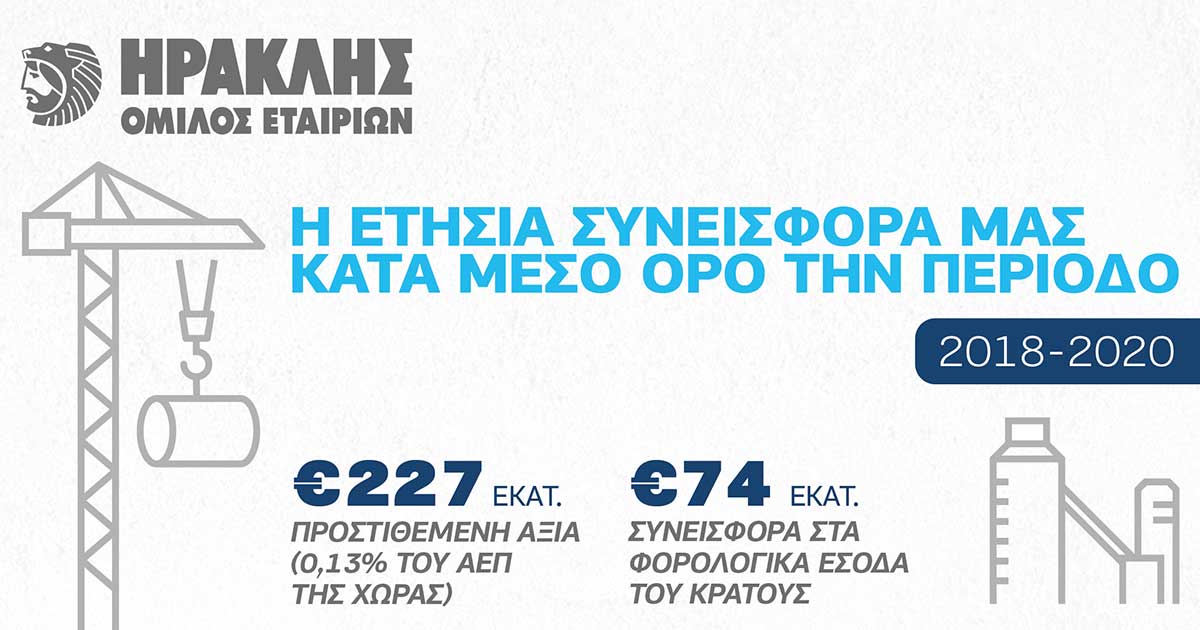 Ισχυρό το αποτύπωμα του Ομίλου ΗΡΑΚΛΗΣ στην εγχώρια οικονομία και κοινωνία την τριετία 2018-2020