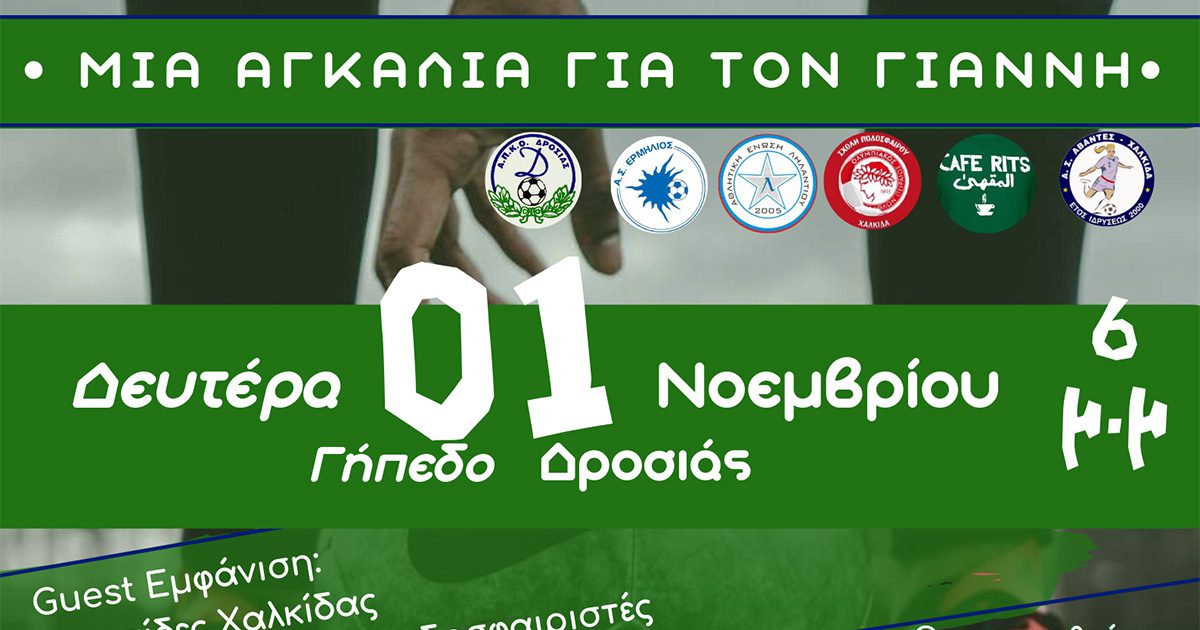 Ο Α.Ο Απόλλων Ερετρίας και ο Σύλλογος Ενεργών Πολιτών "Η Μέδουσα", ανοίγουν μια αγκαλιά για τον Γιάννη και καλούν όλα τα αθλητικά σωματεία, τους συλλόγους, τους φορείς και τους πολίτες, να σταθούμε δίπλα σε ένα ακόμα παιδί που παλεύει να συνεχίσει να ζει μια [...]