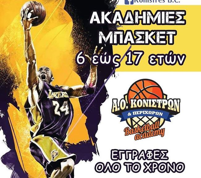 Για 4η συνεχή χρονιά το τμήμα μπάσκετ του «ΑΟ Κονιστρών και Περιχώρων» «KONISTRES BC» συνεχίζει την επιτυχημένη πορεία των ακαδημιών του, με τον αγαπημένο προπονητή μικρών και μεγάλων Άγκι Ιμπέζα να περιμένει τους μικρούς μας φίλους στο γήπεδο μπάσκετ Κονιστρών από το Σάββατο 5 [...]