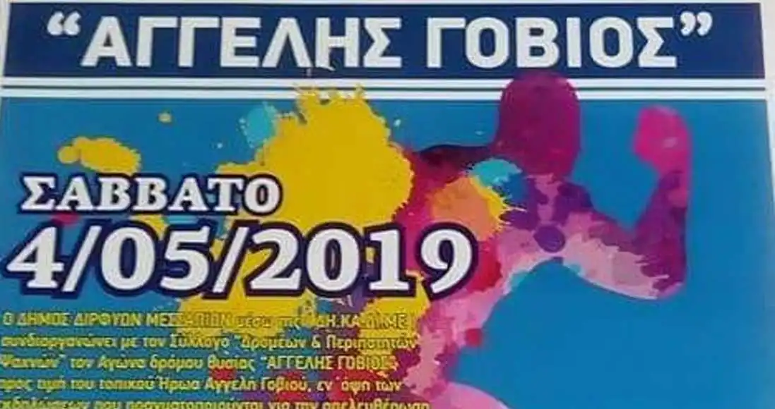 Ο Δήμος Διρφύων Μεσσαπίων διοργανώνει τον Αγώνα Δρόμου Θυσίας Αγγελής Γοβιός. Το Σάββατο 4 Μαΐου 2019 και ώρα 16:30 θα διεξαχθεί ο αγώνας δρόμου με τόπο εκκίνησης και τερματισμού την Κεντρική Πλατεία Ψαχνών. Οι αγώνες 1χλμ και 5 χλμ θα ξεκινήσουν στις 16:30 και [...]