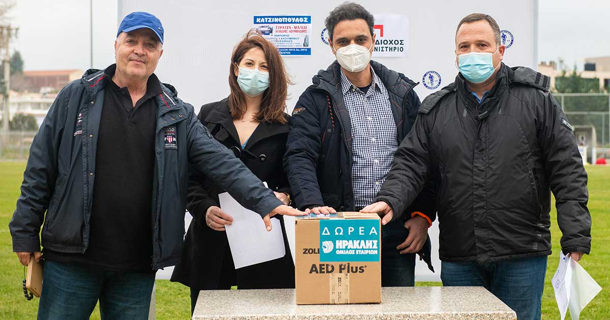Με οδηγό τη θεμελιώδη αξία της Υγείας & Ασφάλειας και μακρόχρονη παράδοση συνεισφοράς στις τοπικές κοινωνίες, ο Όμιλος ΗΡΑΚΛΗΣ προχώρησε σε δωρεά Αυτόματου Εξωτερικού Απινιδωτή στο Φίλαθλο Σωματείο Ταμυναϊκός Αλιβερίου.