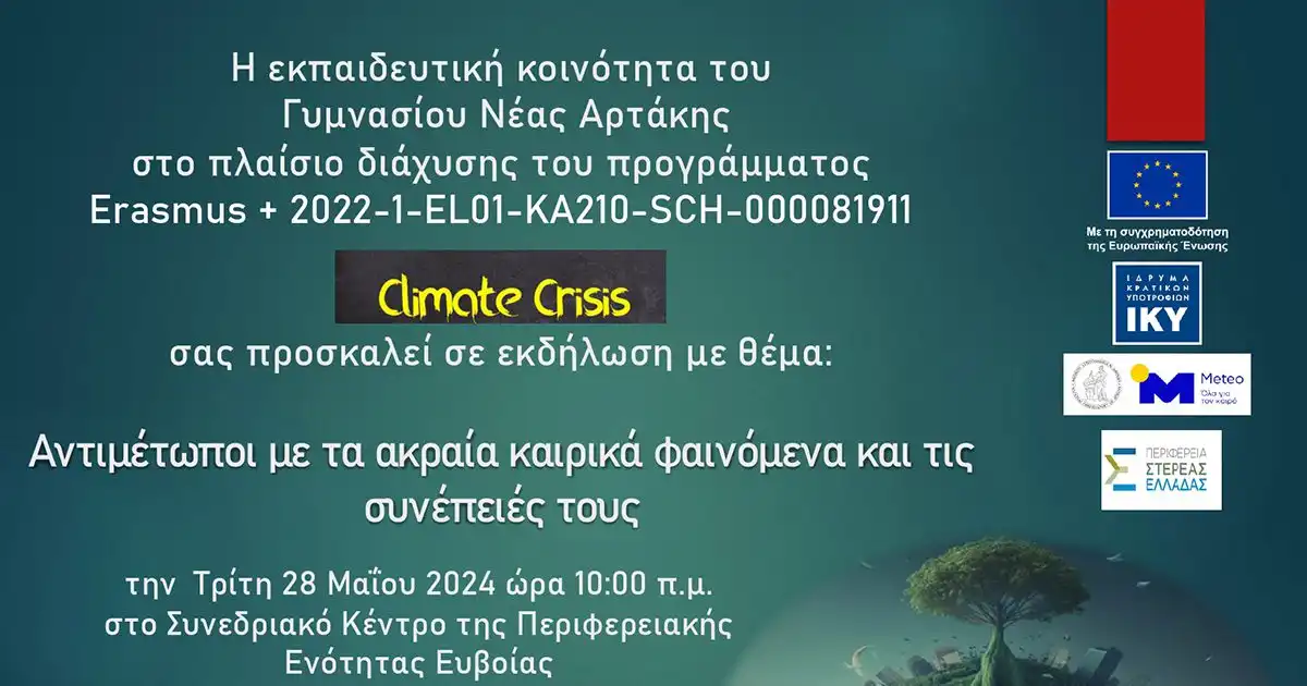 Eκδήλωση θα πραγματοποιηθεί την Τρίτη 28 Μαΐου 2024 στο Συνεδριακό Κέντρο της Περιφερειακής Ενότητας Ευβοίας στις 10:00 το πρωί (προσέλευση 9:45) με κεντρικό ομιλητή τον κ Κωνσταντίνο Λαγουβάρδο, Δρ Μετεωρολόγο Διευθυντή Ερευνών του Εθνικού Αστεροσκοπείου Αθηνών και υπεύθυνο του δικτύου μετεωρολογικών σταθμών ΜΕΤΕΟ.