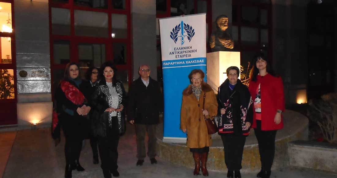 O Πρόεδρος του Παραρτήματος Χαλκίδος κ. Δημήτριος Αναγνώστου θα ήθελε να ευχαριστήσει θερμότατα την Πρόεδρο του Δ.Ο.Α.Π.ΠΕ.Χ. κ. Ελένη Αϊδίνη για την άμεση ανταπόκρισή της στο αίτημα της Ελληνικής Αντικαρκινικής Εταιρείας για την φωταγώγηση του εν λόγω κτιρίου καθώς και την Αντιδήμαρχο Υγείας κ. Αικατερίνη Μεγάλου για την βοήθειά της.