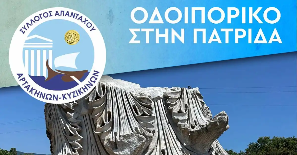 Ο Σύλλογος Απανταχού Αρτακηνών-Κυζικηνών με ιδιαίτερη χαρά σας προσκαλεί στην εκδήλωση «Οδοιπορικό στην Πατρίδα – Απονομή τιμητικού βραβείου συμπολίτη μας» την Παρασκευή 13 Σεπτεμβρίου 2024 και ώρα 20:00 στο café Ζέφυρος, στη Νέα Αρτάκη Ευβοίας.