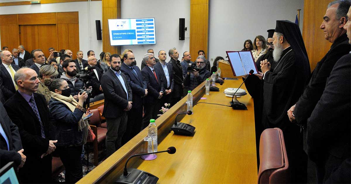 Την καθιερωμένη εκδήλωση για την έλευση του νέου έτους και την κοπή της πίτας πραγματοποίησε την Τετάρτη 22 Φεβρουαρίου 2023 η διοίκηση του Επιμελητηρίου Εύβοιας, στην αίθουσα συνεδριάσεων του Φορέα μέσα σε ένα εξαιρετικό κλίμα και με τη συμμετοχή εκπροσώπων της εκκλησίας, της πολιτείας, της τοπικής αυτοδιοίκησης, των αρχών, των φορέων των παραγωγικών τάξεων και της επιχειρηματικής κοινότητας. Την εκδήλωση τίμησε με την παρουσία του και με την ευλογία της πίτας ο Σεβασμιώτατος Μητροπολίτης Χαλκίδος κ. Χρυσόστομος.
