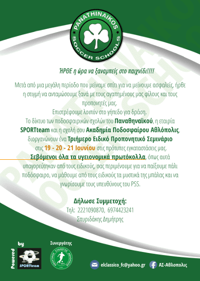 Η ομάδα Α.Σ. Αθλόπολις σε συνεργασία με τον Παναθηναϊκό θα πραγματοποιήσει για πρώτη φορά στη Χαλκίδα το τριήμερο 19-20-21 Ιουνίου 2020 ποδοσφαιρικό καμπ.