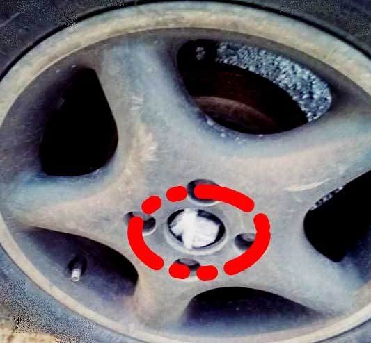 σε υποδοχή της ζάντας ενός εκ των ελαστικών του οχήματος, μία αυτοσχέδια νάιλον συσκευασία, που περιείχε ποσότητα ηρωίνης, σε μορφή βράχου, μεικτού βάρους (23,2) γραμμαρίων, κάτω από τον τάπητα του συνοδηγού, ποσότητα ηρωίνης, ομοίως σε μορφή βράχου, βάρους (0,6) γραμμαρίων και
