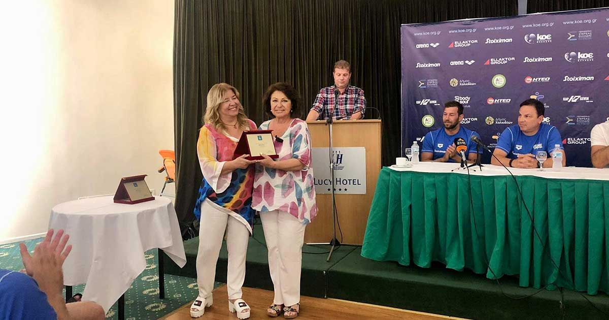 Η πρόεδρος του ΔΟΑΠΠΕΧ, Ελένη Αϊδίνη, εξήρε τις αθλητικές ικανότητες και το αγωνιστικό πάθος της Εθνικής μας, ιδιαίτερα όμως αναφέρθηκε για το ήθος και την αξία τους ως απλοί άνθρωποι και μετά ως αθλητές. Στη συνέχεια, ευχαρίστησε τον Πρόεδρο, τον Αντιπρόεδρο της ΚΟΕ και όλο το προπονητικό Team, για τη επιλογή για άλλη μια φορά της Χαλκίδας και ότι η προετοιμασία της Εθνικής στο Δημοτικό Κολυμβητήριο Χαλκίδας, αποτελεί μεγίστη τιμή.