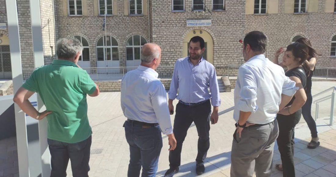 Ακολούθησε επίσκεψη στο έργο ανάπλασης του περιβάλλοντος χώρου και των αθλητικών εγκαταστάσεων, καθώς και της βασικής βιβλιοθήκης του 1ου Γυμνασίου – Λυκείου Καρπενησίου, συνολικού προϋπολογισμού 2.000.000 €.
