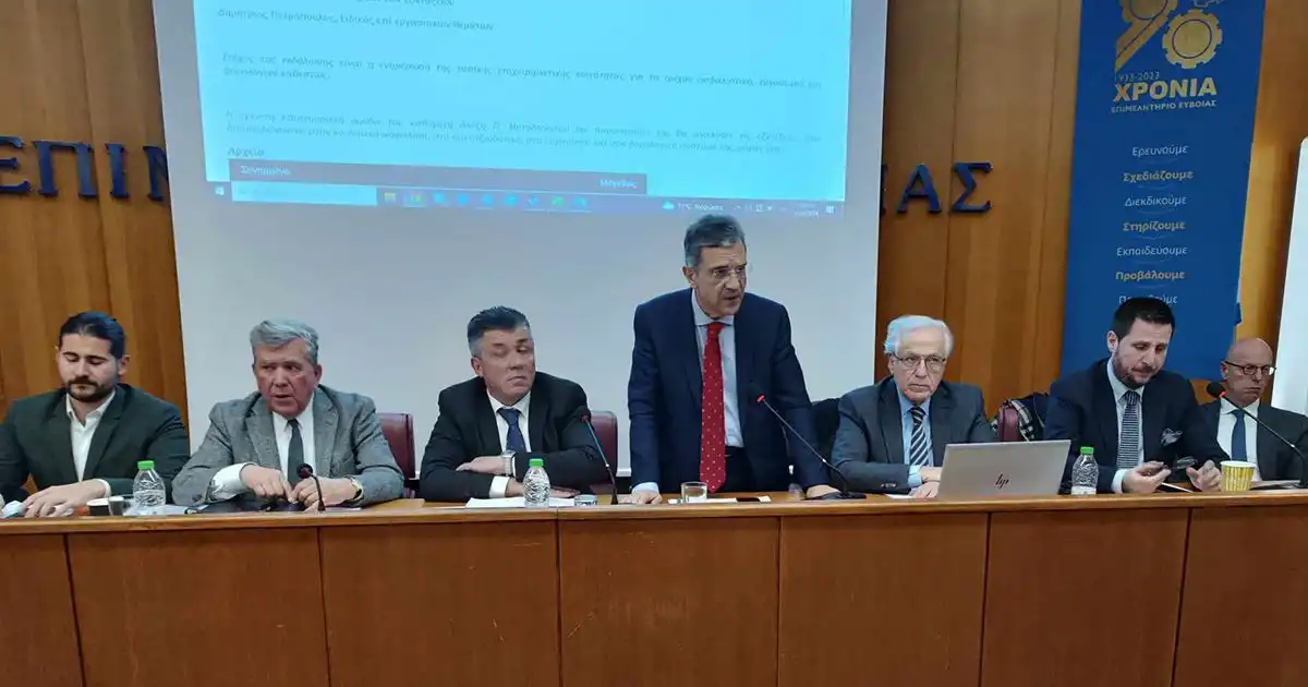 Η εκδήλωση έλαβε χώρα τη Δευτέρα 15 Ιανουάριου 2024 στο κτίριο του Φορέα, στην Αίθουσα “Καράκωστα”, η οποία πραγματικά κατακλίσθηκε από τους συμμετέχοντες επαγγελματίες, επιχειρηματίες και εκπροσώπους επαγγελματικών Φορέων.