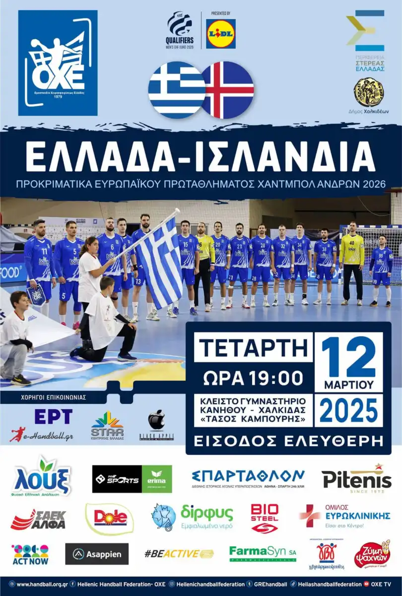 Τον Δήμο Χαλκιδέων και τη Χαλκίδα επέλεξαν, για ακόμη μια φορά, η Ομοσπονδία Χειροσφαιρίσεως Ελλάδος (Ο.Χ.Ε) και οι αθλητές της Εθνικής Ομάδας Handball Ανδρών, για τα προκριματικά του EURO 2026.