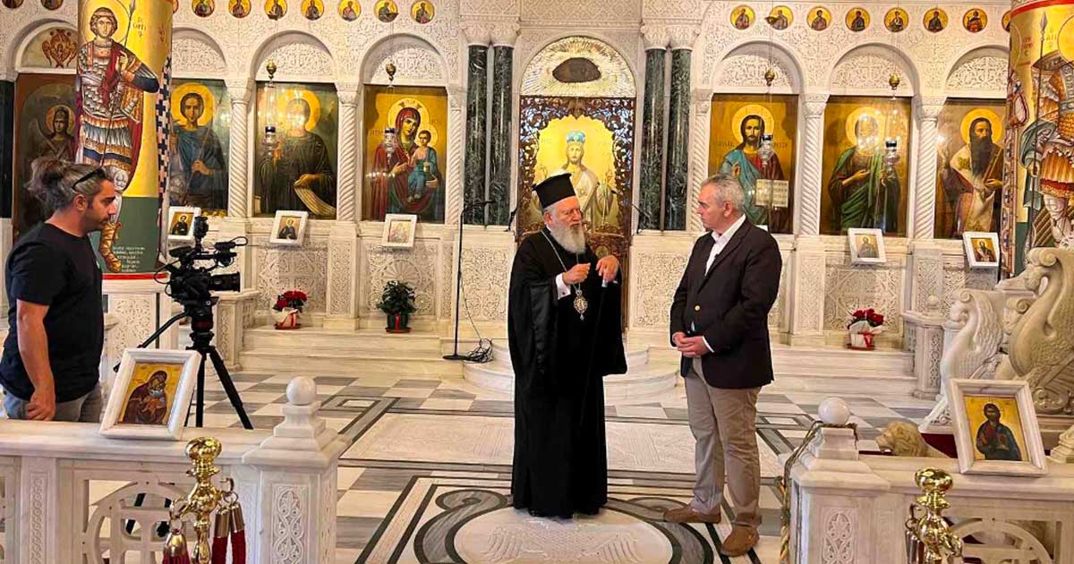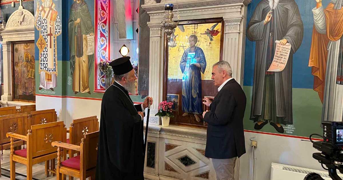 Ο κ. Χαρακόπουλος ξεναγήθηκε από τον Σεβασμιώτατο κ. Χρυσόστομο στον Προσκυνηματικό Ιερό Ναό του Οσίου Ιωάννου και εν συνεχεία στο Μουσείο Μικρασιατικού Πολιτισμού της Ιεράς Μητροπόλεως Χαλκίδος, ενώ συνάμα στους χώρους του Ιερού Προσκυνήματος και του Μουσείου βιντεοσκοπήθηκε συνέντευξή του Σεβασμιωτάτου από τον κ. Χαρακόπουλου με αφορμή την συμπλήρωση 100 ετών από τη Μικρασιατική Καταστροφή.