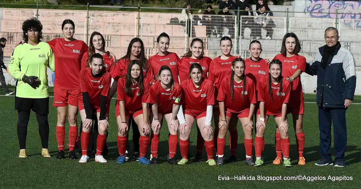 Τα κορίτσια της ομάδας ποδοσφαίρου του 2ου ΓΕΛ Χαλκίδας, στον τελικό της Εύβοιας.