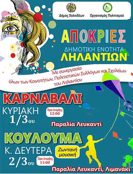 Την Κυριακή 1 Μαρτίου 2020 θα πραγματοποιηθεί Καρναβάλι στο Ληλάντιο.