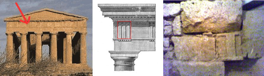 Τρίγλυφο μετόπης από την αρχαιότητα σε δεύτερη χρήση ως δόμος για το μεσαιωνικό τείχος της Χαλκίδας. Εκτίθεται στο υπόγειο του Επιμελητηρίου Χαλκίδας (φωτό: Κ.Δ. Πολίτης).