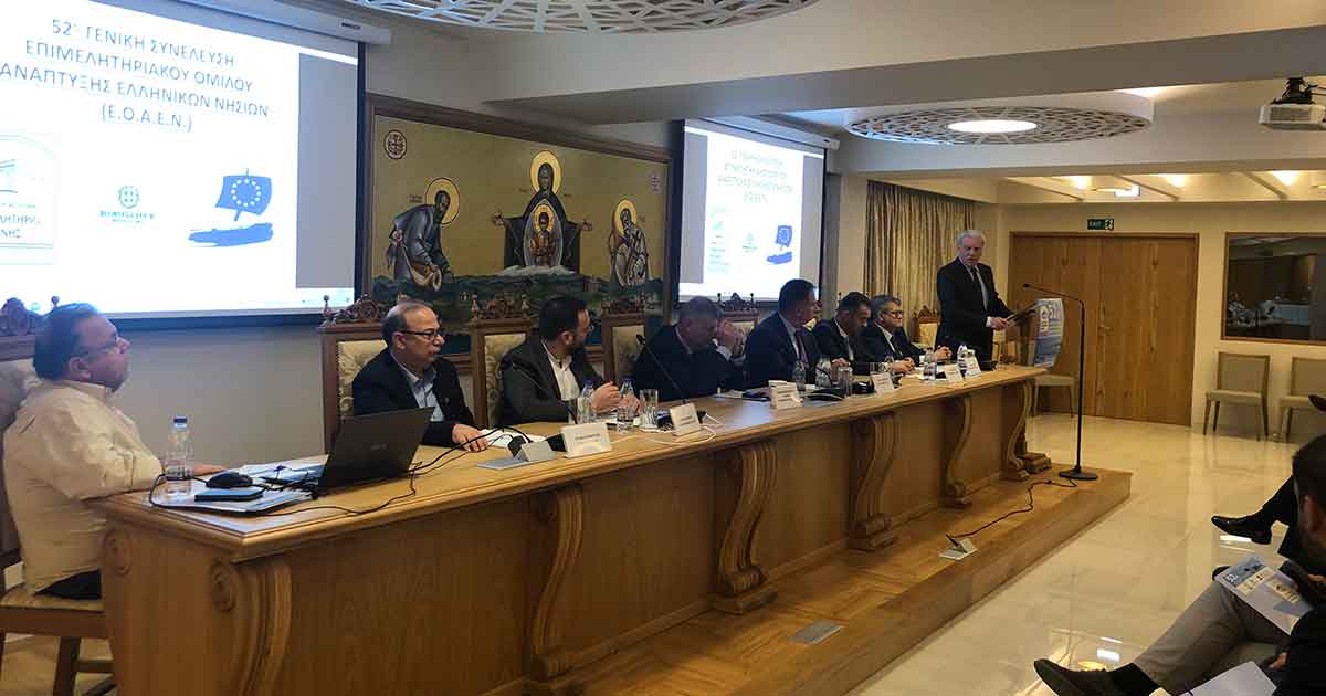 Η διεύρυνση του μέτρου του μεταφορικού ισοδύναμου, το κόστος των επιχειρήσεων από την ενεργειακή κρίση στην νησιωτική χώρα, αλλά και τα προγράμματα χρηματοδότησης και οι απόψεις που εκφράστηκαν αποτέλεσαν τη βάση διαμόρφωσης συγκεκριμένων αιτημάτων και διεκδικήσεων προς ενίσχυση του νησιωτικού επιχειρείν και των νησιωτικών οικονομιών, στην 52η Γενική Συνέλευση του Επιμελητηριακού Όμιλου Ανάπτυξης Ελληνικών Νησιών (ΕΟΑΕΝ).