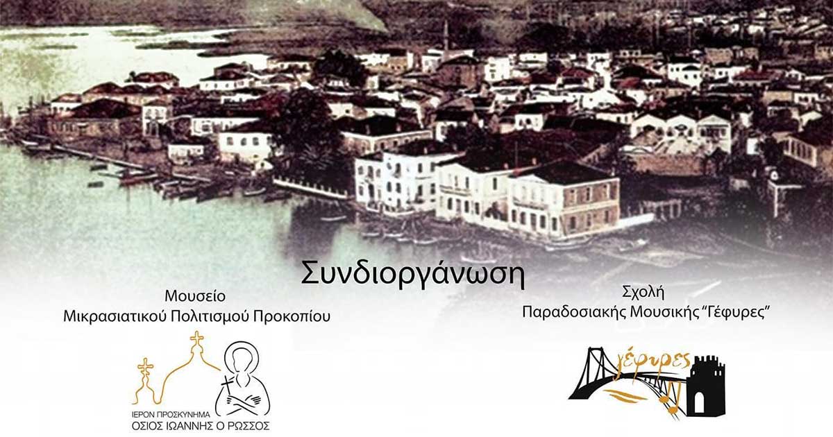 Το Μουσείο Μικρασιατικού Πολιτισμού Προκοπίου και η Σχολή Παραδοσιακής Μουσικής "Γέφυρες" συνδιοργανώνουν το 1ο Φεστιβάλ Μικρασιατικού Πολιτισμού "Όσιος Ιωάννης ο Ρώσσος" την Παρασκευή 23 Σεπτεμβρίου 2022 και ώρα 20:00 στην Πλατεία Προκοπίου. Συμμετέχουν: Ορχήστρα και Χορωδία Μικρασιατικού Πολιτισμού Προκοπίου Ορχήστρα Σχολής Παραδοσιακής Μουσικής Γέφυρες [...]