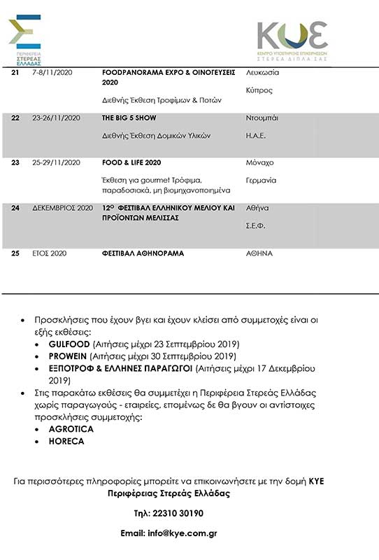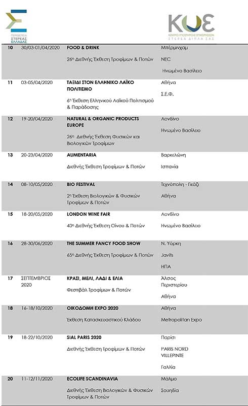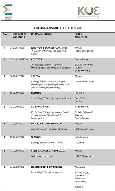Δείτε αναλυτικά το πρόγραμμα των εκθέσεων για το 2020 που θα συμμετέχει η Περιφέρεια Στερεάς Ελλάδας:
