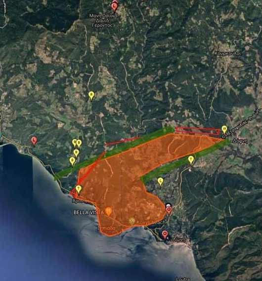 Πολλά σπίτια έχουν ήδη παραδοθεί στις φλόγες, ενώ λίγο μετά τις 03:00 τα ξημερώματα της Τετάρτης εστάλη μήνυμα από το 112 να εκκενωθούν και οι οικισμοί Κουρκουλοί και Σκεπαστή.