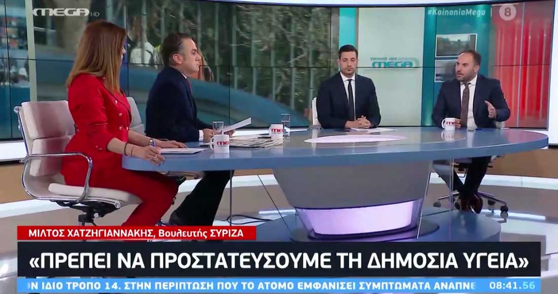 Την απόλυτη ανάγκη προστασίας της Δημόσιας Υγείας ανέδειξε ως πρώτη προτεραιότητα ο βουλευτής Ευβοίας του ΣΥΡΙΖΑ Μίλτος Χατζηγιαννάκης, μιλώντας στην εκπομπή “Κοινωνία ώρα Mega”, στην οποία βρέθηκε καλεσμένος σήμερα το πρωί.