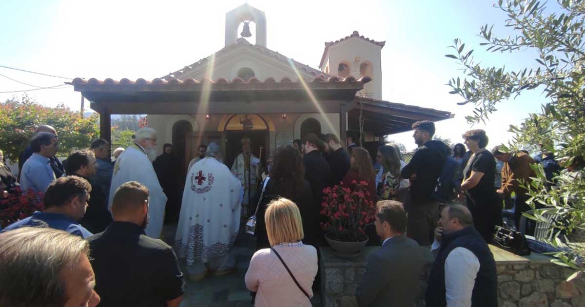 Ο Σεβασμιώτατος και η συνοδεία του αναχώρησαν για το Αχλάδι Νηλέως, όπου στον Ενοριακό Ι. Ναό Κοιμήσεως Θεοτόκου ετελέσθη η Εξόδιος Ακολουθία της Κηδείας της μητέρας του Δημάρχου Μαντουδίου-Λίμνης-Αγίας Άννης κ. Γεωργίου Τσαπουρνιώτη και αμέσως μετά συνέχισαν για τη Χαλκίδα.