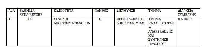 Ο δήμος Μαντουδίου-Λίμνης-Αγίας Άννας εγκρίνει την πρόσληψη του παρακάτω προσωπικού στο Τμήμα Καθαριότητας και Ανακύκλωσης και συντήρηση πρασίνου ανταποδοτικού χαρακτήρα, με σύμβαση εργασίας ιδιωτικού δικαίου ορισμένου χρόνου και διάρκειας σύμβασης.
