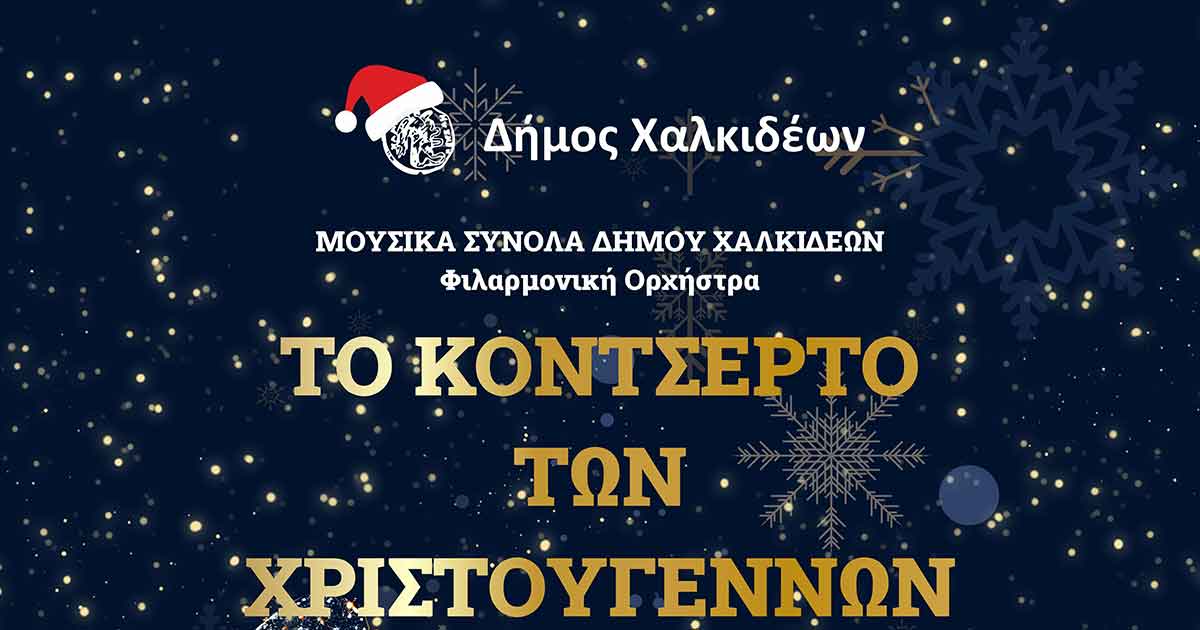 Για ακόμη μια χρονιά, το καθιερωμένο Κοντσέρτο των Χριστουγέννων «Όλη η πόλη μια μουσική» από τα Μουσικά Σύνολα του Δήμου Χαλκιδέων, έρχεται να χαρίσει χριστουγεννιάτικες μελωδίες και να δώσει ρυθμό σε όλο τον Δήμο.