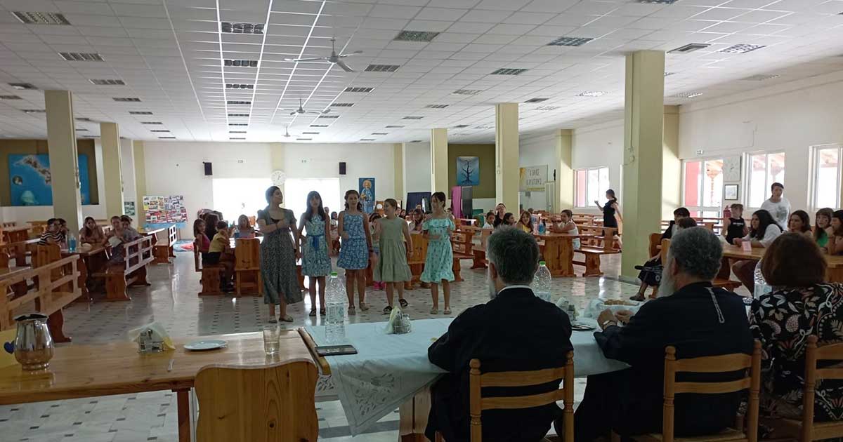 Τη Δευτέρα 8 Αυγούστου 2022 το μεσημέρι, προτελευταία ημέρα της πέμπτης κατασκηνωτικής περιόδου (θηλέων Δημοτικού), ο Σεβασμιώτατος Ποιμενάρχης μας, Μητροπολίτης Χαλκίδος κ. Χρυσόστομος επισκέφθηκε τις Κατασκηνώσεις της Ιεράς Μητροπόλεως, όπου συνάντησε την αρχηγό κ. Σταματίνα Βαρκάδου-Κουβαρά-Εκπαιδευτικό, τα στελέχη και τις κατασκηνώτριες, γευμάτισε μαζί τους και παρακολούθησε την εορτή λήξης που είχαν ετοιμάσει.