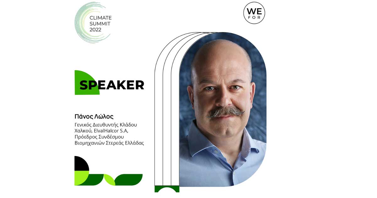 Ο Πρόεδρος του Δ.Σ. του Συνδέσμου Βιομηχανιών Στερεάς Ελλάδας και Γενικός Διευθυντής Κλάδου Χαλκού της ΕΛΒΑΛΧΑΛΚΟΡ Α.Ε., κύριος Πάνος Λώλος θα εκφωνήσει μετά τον υπουργό Περιβάλλοντος και Ενέργειας, κύριο Κώστα Σκρέκα κεντρική ομιλία κατά την έναρξη της διήμερης διάσκεψης “WeForClimate Summit” το Σάββατο 28 Μαΐου 2022 και ώρα 17:30.