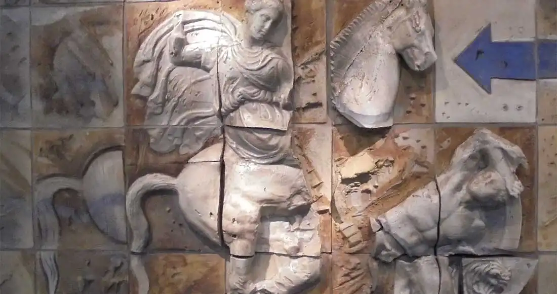 Το έργο στην φωτογραφία είναι αφιέρωμα στο Δεξίλεω Μετρό Δάφνη 2000 κεραμικό του Δημήτρη Μυταρά.