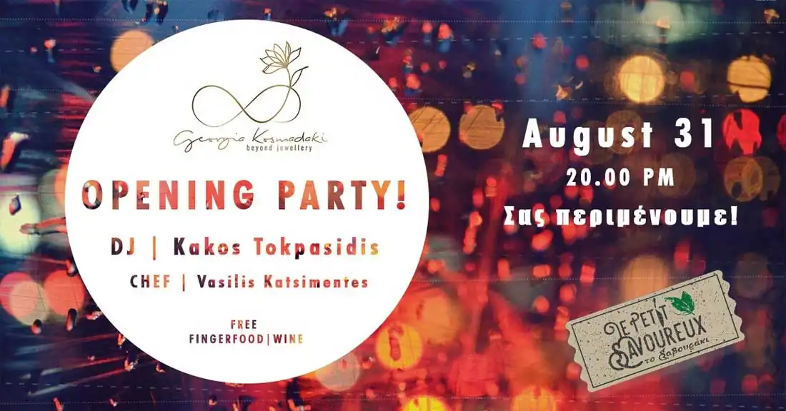 Γιορτάζοντας τα πρώτα του βήματα, το κατάστημα Γεωργία Κοσμαδάκη σας προσκαλεί να τα γιορτάσετε μαζί του σε μια βραδιά γεμάτη μουσική, φαγητό και ποτά!