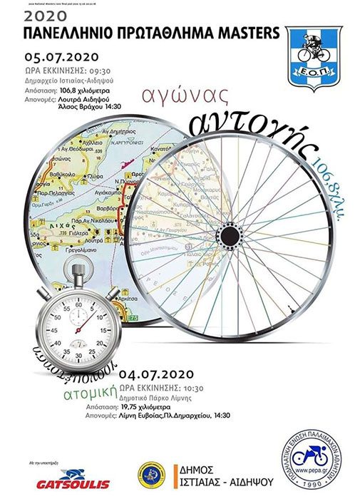 Όλα έτοιμα για το Πανελλήνιο Πρωτάθλημα ποδηλασίας Δρόμου, στην κατηγορία Masters Ανδρών και Γυναικών, που θα διεξαχθεί στη Βόρεια Εύβοια, το Σαββατοκύριακο 04 και 05 Ιουλίου 2020.