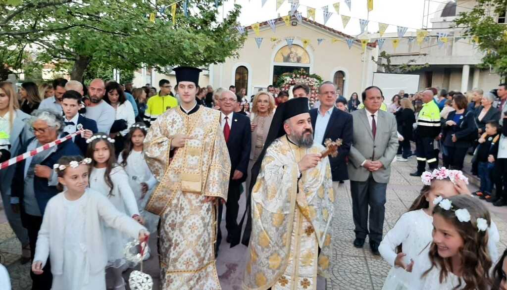 Ακολούθησε η λιτανεία της ιεράς εικόνος, την οποία πλαισίωσαν τα παιδιά των Κατηχητικών Σχολείων της Ενορίας.