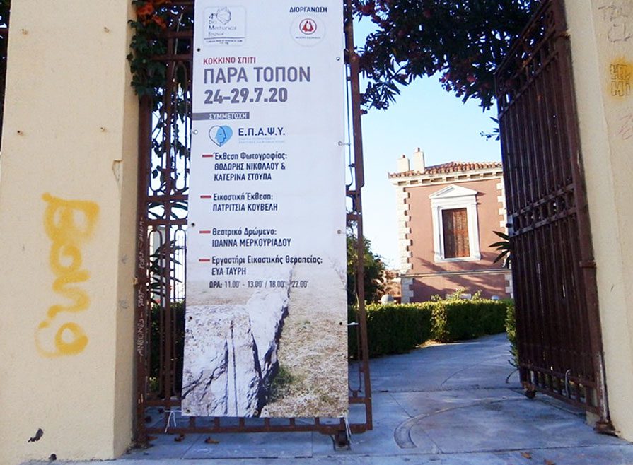 «Παρά – μυθώ». Πέντε καλλιτεχνικές δράσεις διαφορετικής προσέγγισης από την Ε.Π.Α.Ψ.Υ και τις Στεγαστικές Ομάδες Ψυχοκοινωνικής αποκατάστασης Εύβοιας «κατασκηνώνουν» αυτές τις μέρες, από τις 4 έως τις 29 Ιουλίου, στο Κόκκινο Σπίτι. Μέσα από τις παράλληλες αυτές δράσεις των εκδηλώσεων που πραγματοποιούνται στον Πολιτιστικό Χώρο της Αυλίδειας Αρτέμιδας οι δύο φωτογράφοι Θοδωρής Νικολάου και Κατερίνα Στούπα, η εικαστική ψυχοθεραπεύτρια Κλεοπάτρα Κουβέλη, η ηθοποιός Ιωάννα Μερκουριάδου και η εικαστική θεραπεύτρια Εύα Ταυρή, ενώνουν δυνάμεις με κοινό στόχο το άνοιγμα της δραστηριότητας των ενοίκων που συμμετέχουν και την διεύρυνση διαλόγου τους με τους επισκέπτες.
