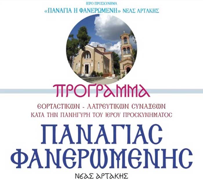 Η Μητρόπολη Χαλκίδας ανακοίνωσε το πρόγραμμα πανηγύρεως της Παναγίας Φανερωμένης στη Νέα Αρτάκη.