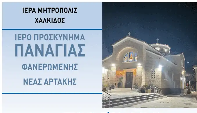 Την Παρασκευή 22 και το Σάββατο 23 Αυγούστου πανηγυρίζει με μεγάλη εκκλησιαστική λαμπρότητα το Ιερό Προσκύνημα της ΠΑΝΑΓΙΑΣ ΤΗΣ ΦΑΝΕΡΩΜΕΝΗΣ στη Νέα Αρτάκη Χαλκίδος, σύμφωνα με το ακόλουθο πρόγραμμα: