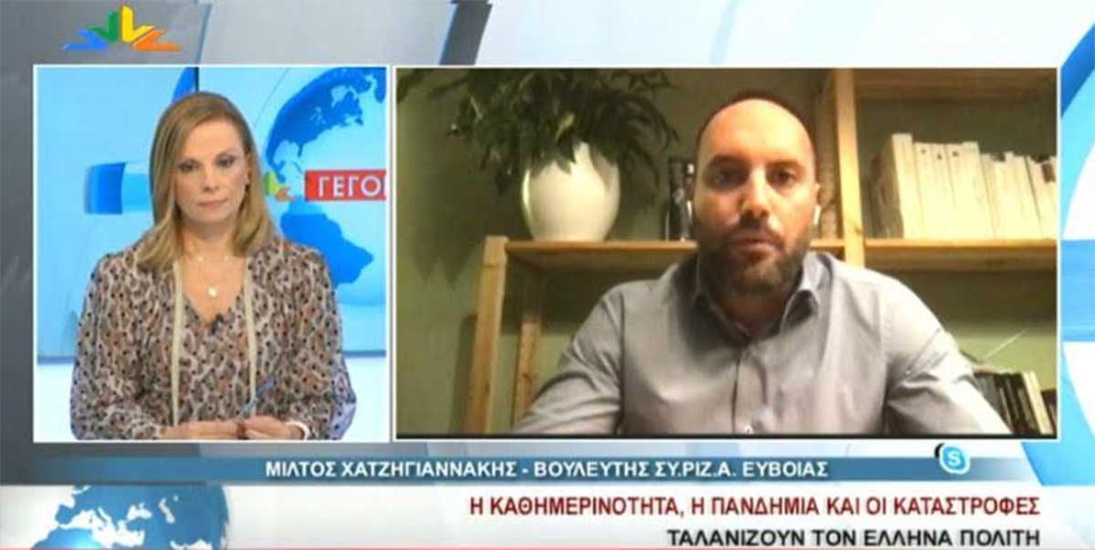 Την περιοδεία του Προέδρου του ΣΥΡΙΖΑ Προοδευτική Συμμαχία Αλέξη Τσίπρα στην πυρόπληκτη βόρεια Εύβοια, αλλά και την ομιλία του στη Χαλκίδα σχολίασε ο Μίλτος Χατζηγιαννάκης, μιλώντας στο κεντρικό δελτίο ειδήσεων του Star Κεντρικής Ελλάδας και τη δημοσιογράφο Λένα Παρασκευά.