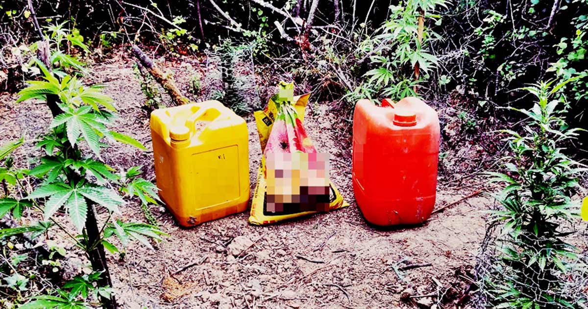 Συνολικά από το σημείο εκριζώθηκαν (5) δενδρύλλια κάνναβης, μετά πλήρους ριζικού συστήματος, ύψους από (0,50) έως (1,10) μέτρων, τα οποία κατασχέθηκαν μαζί με διάφορα σύνεργα γεωργικά εργαλεία, πλαστικά δοχεία κ.α.), πρόσφορα για το πότισμα των δενδρυλλίων.