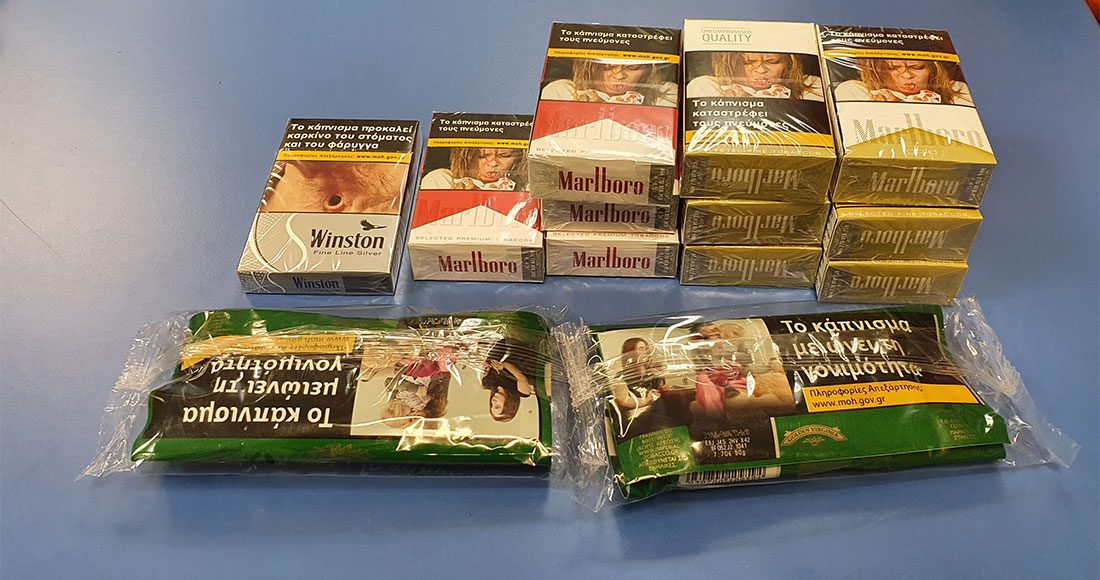 Εν συνέχεια σε νομότυπη έρευνα που διενεργήθηκε στην οικία του εντοπίστηκαν δυο αλλοδαποί υπήκοοι Πακιστάν ηλικίας 18 και 33 ετών. Εντός της οικείας ανευρέθηκαν και κατασχέθηκαν συνολικά 339 πακέτα τσιγάρων και 51 συσκευασίες καπνού διαφόρων επωνυμιών.