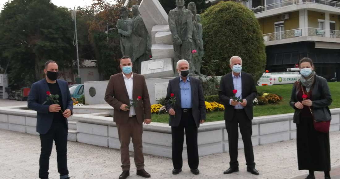 Πενταμελής αντιπροσωπεία του ΣΥΡΙΖΑ Προοδευτική Συμμαχία, αποτελούμενη από τους βουλευτές Ευβοίας Βαγγέλη Αποστόλου και Μίλτο Χατζηγιαννάκη, τον γραμματέα της ΝΕ Ευβοίας Δημήτρη Φωκά, την περιφερειακή σύμβουλο με τον συνδυασμό “Στερεά Υπεροχής” Θεοδώρα Ακριώτου και τον πρ. αναπληρωτή γεν. γραμματέα του υπουργείου Υγείας Σταμάτη Βαρδαρό, βρέθηκε σήμερα το πρωί στο μνημείο Εθνικής Αντιστάσεως στη Χαλκίδα, όπου και, τηρώντας όλα τα υγειονομικά μέτρα, κατέθεσε λουλούδια για να τιμήσει τη μνήμη της επετείου του Πολυτεχνείου.