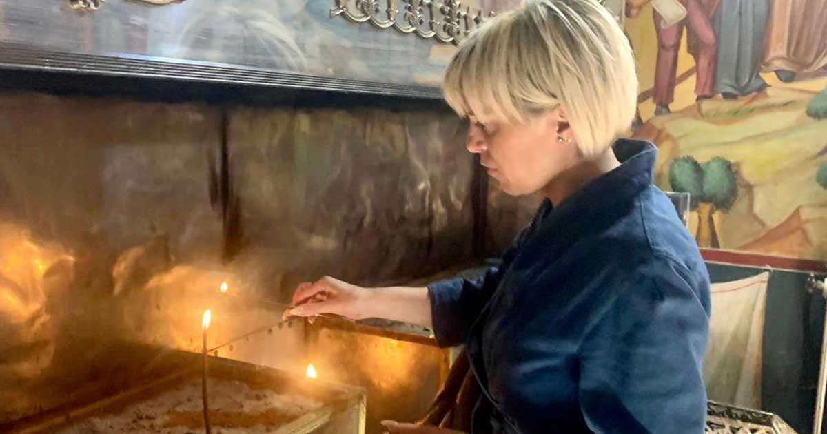 Η κ. Νικολάου συνομίλησε με τον γέροντα Γαβριήλ και με πιστούς ενώ ξεναγήθηκε στο μοναστήρι με τις εντυπωσιακές τοιχογραφίες, τα ιερά λείψανα και τα μοναδικά θρησκευτικά κειμήλια.