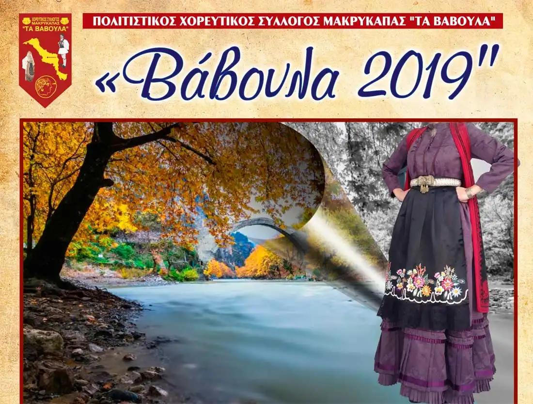 Ο Πολιτιστικός χορευτικός σύλλογος Μακρυκάπας “Τα Βάβουλα” θα πραγματοποιήσουν το Σάββατο 20 Ιουλίου 2019 και ώρα 21:00 στην πλατεία Μακρυκάπας χορευτική εκδήλωση.