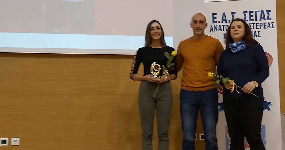 Από το Σύλλογο μας ΕΥΒΟΪΚΟ Γ.Α.Σ βραβεύτηκε η Γαραντζόγιαννη Θέτιδα για τη 3η θέση στο άλμα σε μήκος στο Πανελλήνιο Πρωτάθλημα Νοτίου Ομίλου που έγινε στη Χαλκίδα με επίδοση 5.36μ.