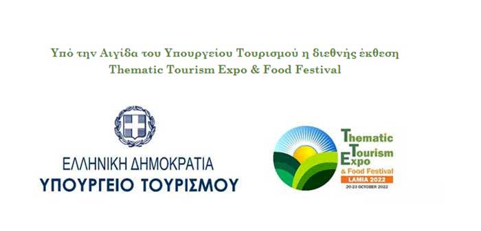 Η διεθνής έκθεση Διεθνής Έκθεσης Θεματικού Τουρισμού και Food Festival που θα πραγματοποιηθεί 20-23 Οκτωβρίου 2022 στο Εκθεσιακό Κέντρο Λαμίας τελεί υπό την αιγίδα του Υπουργείο Τουρισμού.